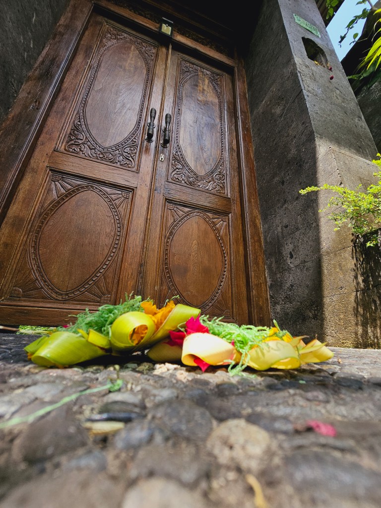 I approach the large wooden door to our refuge, step over yesterday’s offering, and enjoy the last few moments with Peter before Wayan comes to clean. It’s only a few hours, but they are simple. How does so much and so little happen at the same time? Maybe this is what cultivating joy is, I’m present to what is here and enjoying it. My mind is quiet, and there’s little to no anxiety. Maybe this is the value of mindfulness and a practice worth repeating.
