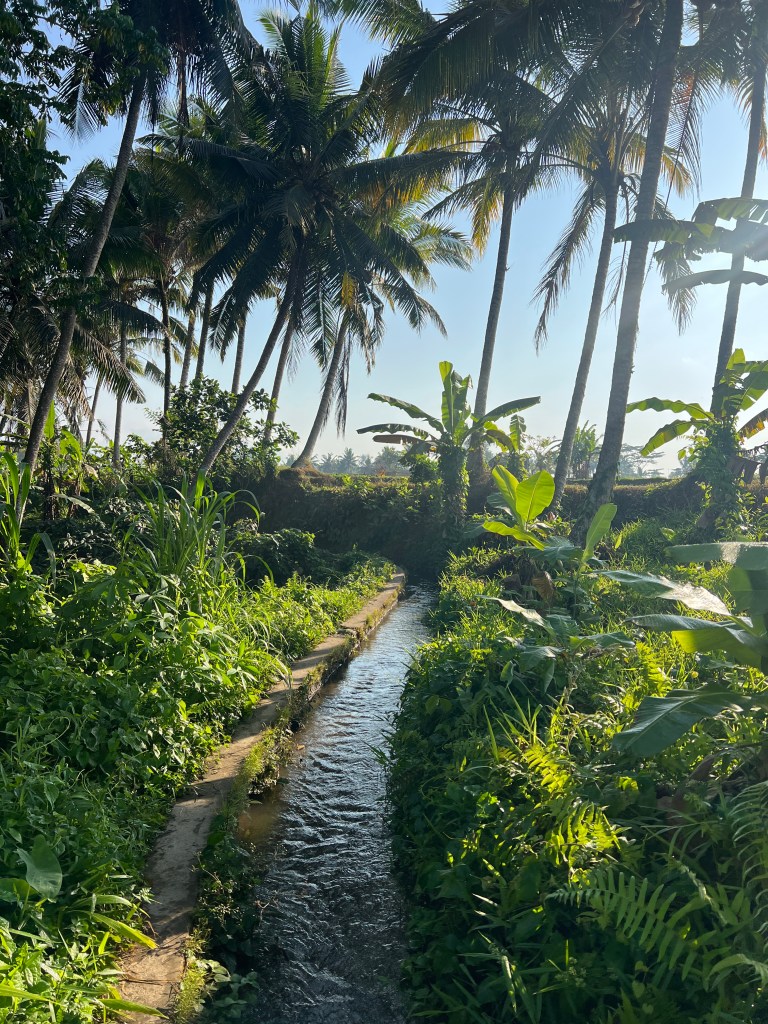 There were times I’d wander into the fields, passing the shopkeepers who were eager for my business, whether it be sarongs, incense, or the liquid in the plastic bottle. My canal path would get narrower, not much more than a foot or two across, and covered with greens. Sometimes I’d worry about what would happen if I fell in. Is the water rain water? Is it wastewater? Could I drown in it, and how long would it be before someone noticed? Thankfully, I never tripped and fell in, even though it would play in my mind over and over. It seemed plausible, maybe inevitable, with the paths being uneven and crumbling.