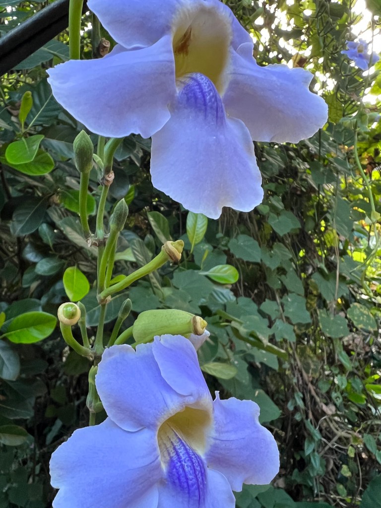 Sometimes I would meander beyond our walls and wander the canals. I’d go up the hill and back, go left, and go right, taking each path to its end. I would pass the beautiful mossy green door, and I would turn so I could see the purple orchids (Bengal Clockvine/Bungan Pelung) dancing in the air. I would wonder how it got there—were the vines planted or were they carried as seeds by birds to take over the forest? Sometimes there would be this amazing yellow and white flower, it smelled like a blend of jasmine and honeysuckle….it’s called Frangipani (Jepun), and it’s Bali’s signature flower used in offerings and ceremonies. The yellow frangipani symbolizes joy and happiness. It certainly lived up to its name, as that’s all I felt every time I inhaled it.